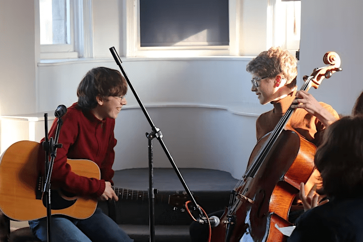 Music by Oscar Churcher, cello, and Diarmuid Slattery, guitar.