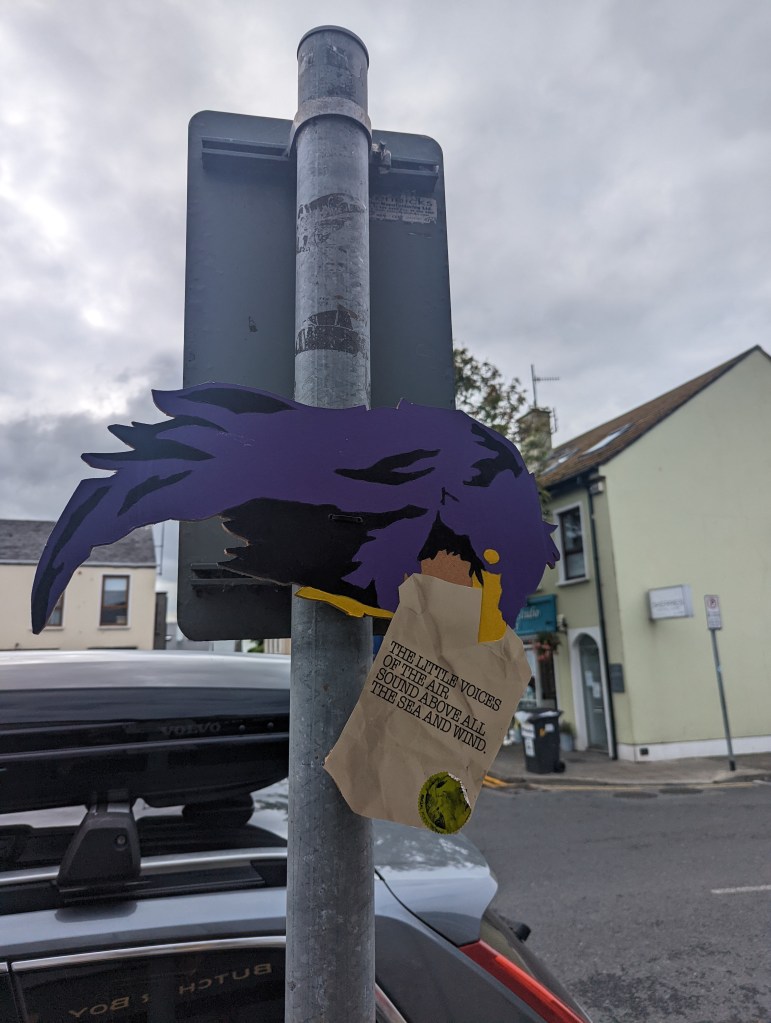 Our raven has already escaped and scattered poetry all over Skerries town — giving us a glimpse of what the Festival weekend will hold.