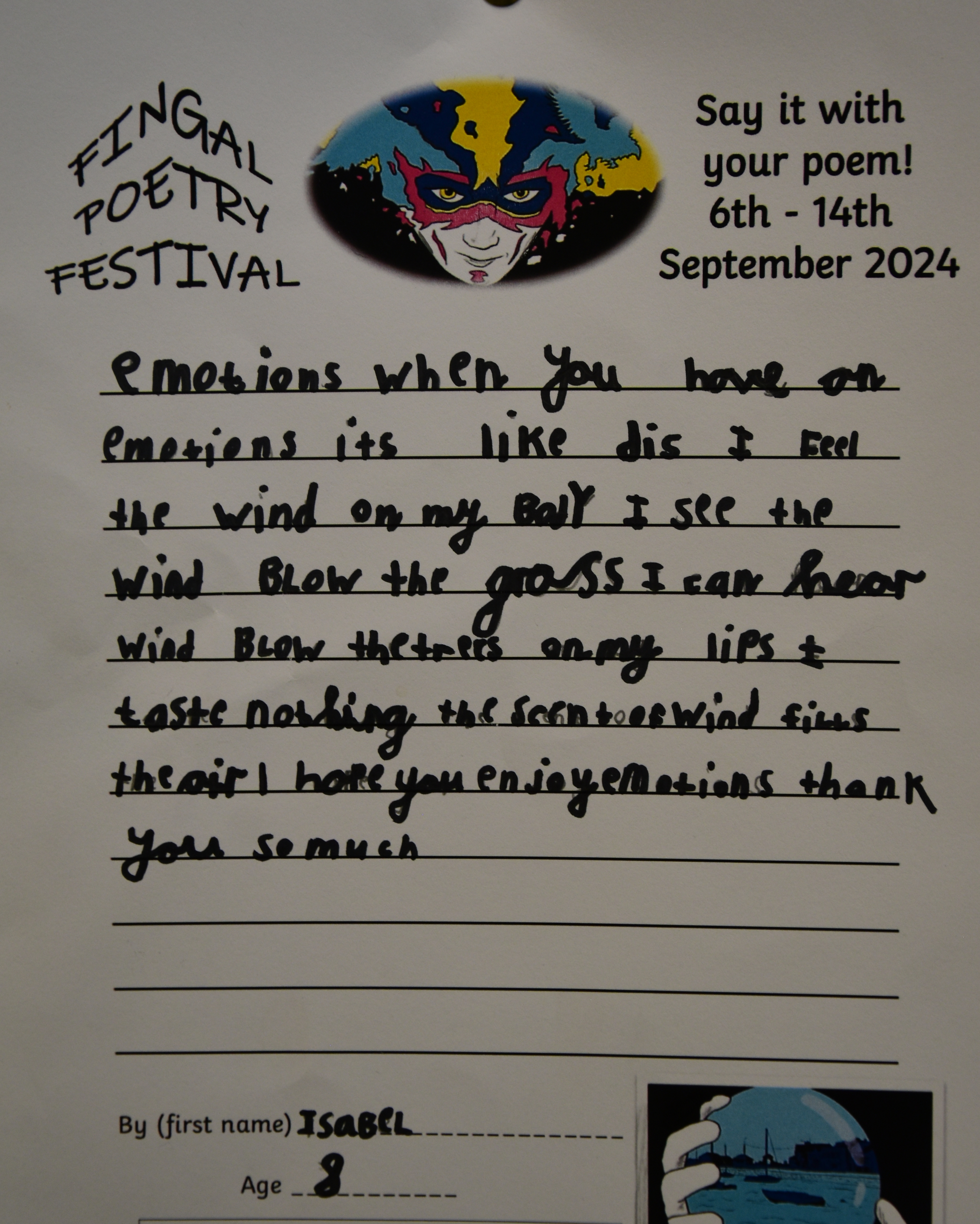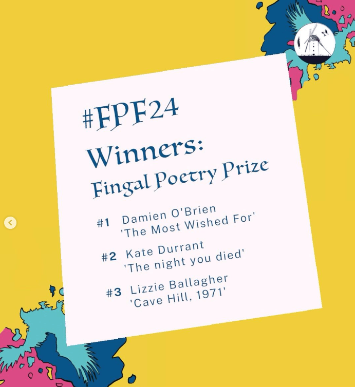 The prizewinning poems of the Irish language competition are available in full on An Fiach Dubh 2024. We have videos of the three prizewinning Fingal Poetry Prize poems on the Fingal Poetry Prize 2024 page.