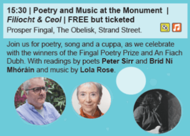 All six have been notified and we are looking forward to hearing their winning entries at the Poetry and Music at the Monument event on September 14th, at 3:30pm in Skerries. Why not join us for this? It is a free event, but ticketed. Reserve your space on Eventbrite.