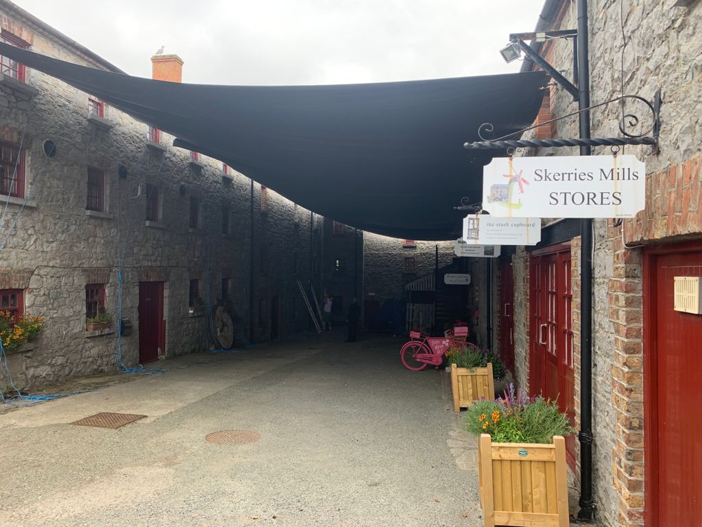 - Skerries Mills Courtyard is a beautiful, canvas covered outdoor venue in historic Skerries Mills. We will be able to offer socially distanced seating and safe access to Skerries Mills’ facilities, including the opportunity to purchase tea, coffee, wine, beer and soft drinks as well as some snacks.