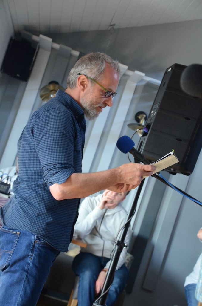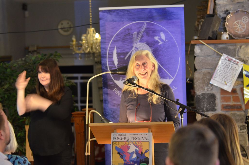 The second of our luchtime readings was a unique event featuring the Deaf Poets Society sharing their work voiced via an interpreter. Also on the bill, Skerries-based Bob Shakeshaft, reading from his recently-published debut collection.