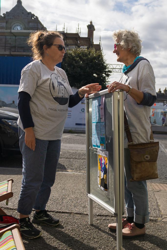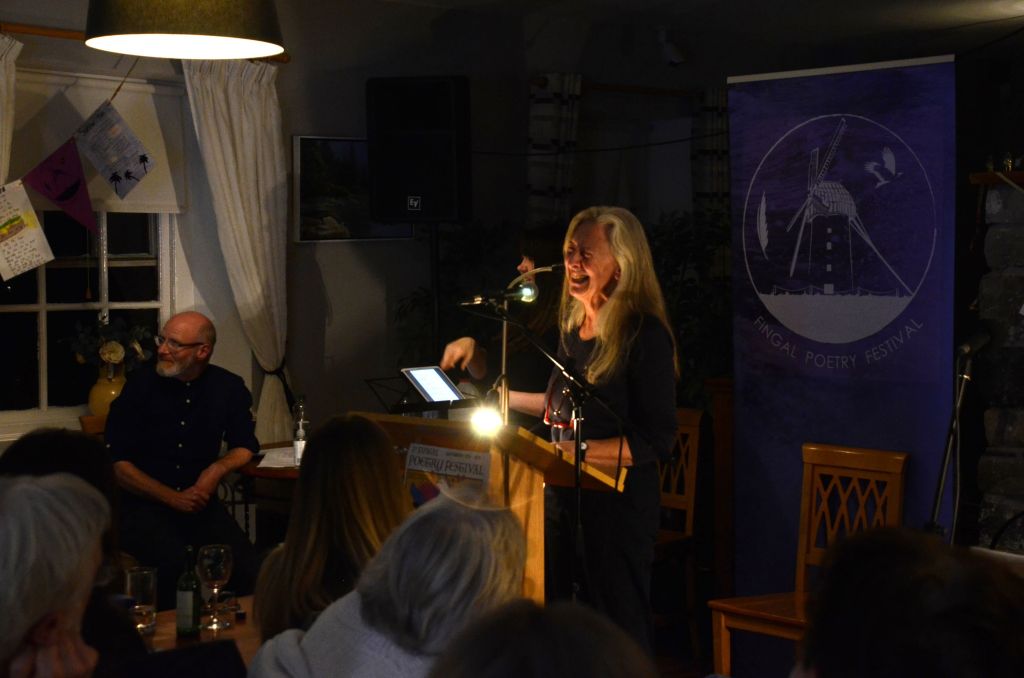 What an amazing time we had – we had poetry on library walls, poetry in libraries, poetry in shop windows, on the streets, in parks, in pubs and a theatre, in a purpose-built auditorium and in a Bridge Club, in schools and outside fish shops, by the sea and even rising out of the sea. We heard poetry in the GAA and in Skerries Mills.